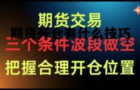 1、预测性开仓期货高手会根据市场趋势进行预测性开仓期货开仓有什么技巧,即根据市场已经形成的趋势来决定...